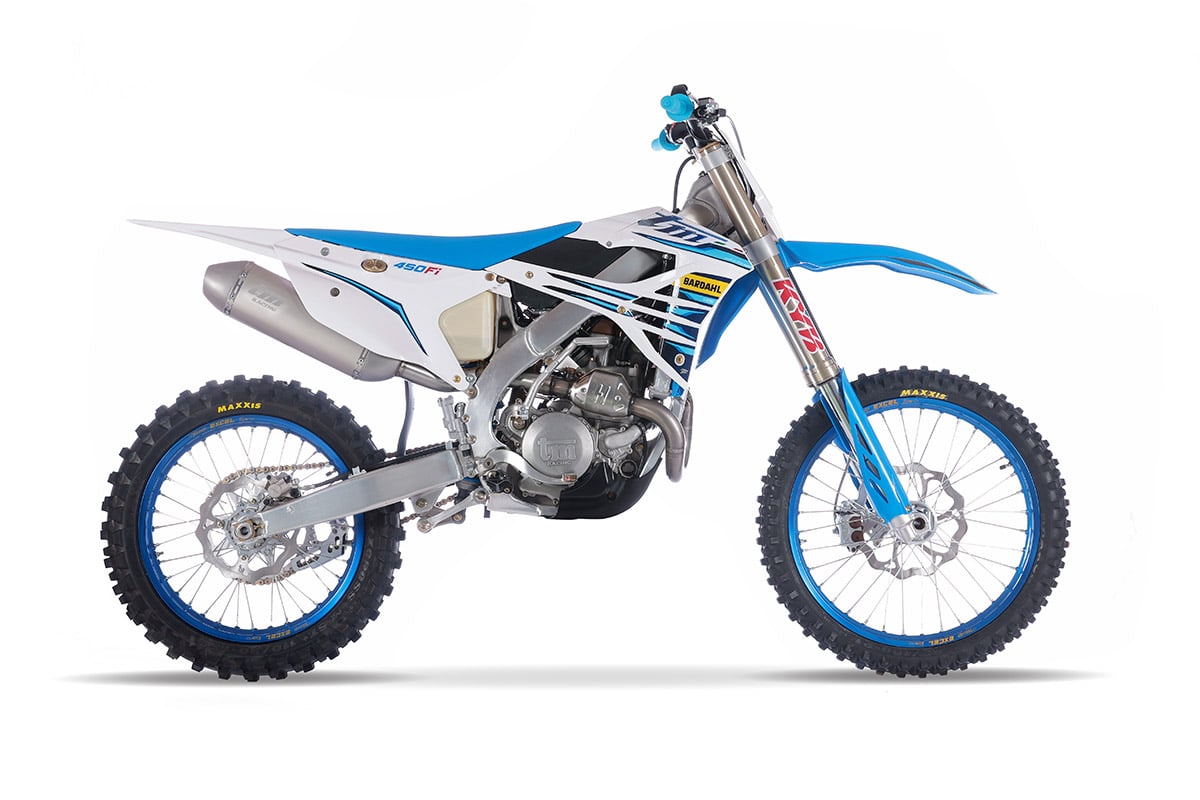 TM is a tiny, family-run company in northern Italy that lives and breathes racing. The 450Fi has an unorthodox layout with the fuel cell located under the seat and the gas cap above the right-side numberplate. The airbox is located on top, much like that of a Yamaha. The TM’s frame is aluminum, and the suspension is KYB. If you really want power, the company offers a 530cc version for $10,995.