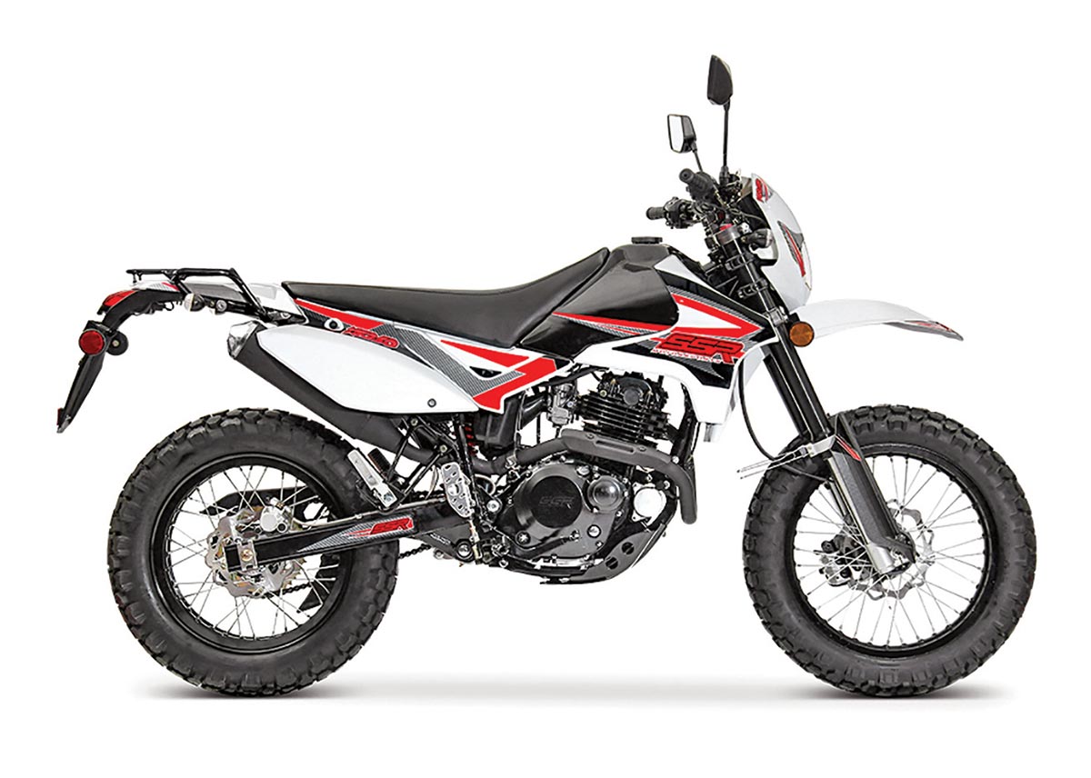 The SSR XF250 has an air-cooled motor, a nice low seat height, uses an 18-inch front wheel and 17-inch rear wheel and is fit with a rear rack. It is carbureted, is a five-speeder with a manual clutch and weighs 328 pounds. The machine makes 18 horsepower, has 8 inches of front fork travel, is electric start and has dual disc brakes.
