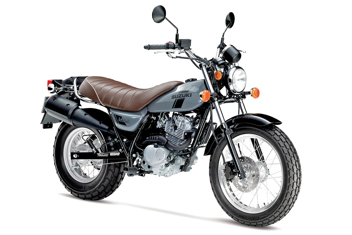 Although unchanged, this machine is a good around-town machine that has a pinch of off-road heritage. It’s powered via an air-cooled, two-valve, carbureted motor with electric start. It features 8.1 inches of suspension travel, a 3.3-gallon fuel tank and gets a claimed 88 miles per gallon.