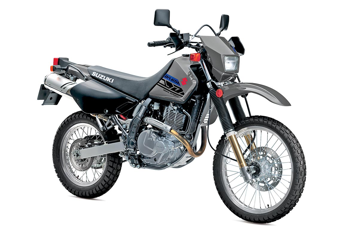 Suzuki’s DR650S is definitely a throwback with its air-cooled, carbureted powerplant. The 644cc five-speeder has good travel (10.2 inches) in the suspension and a 21-inch front and 17-inch rear wheel that are fit with dual-sport rubber. It holds 3.4 gallons of fuel and has good range for those long rides with generous sections of tarmac.