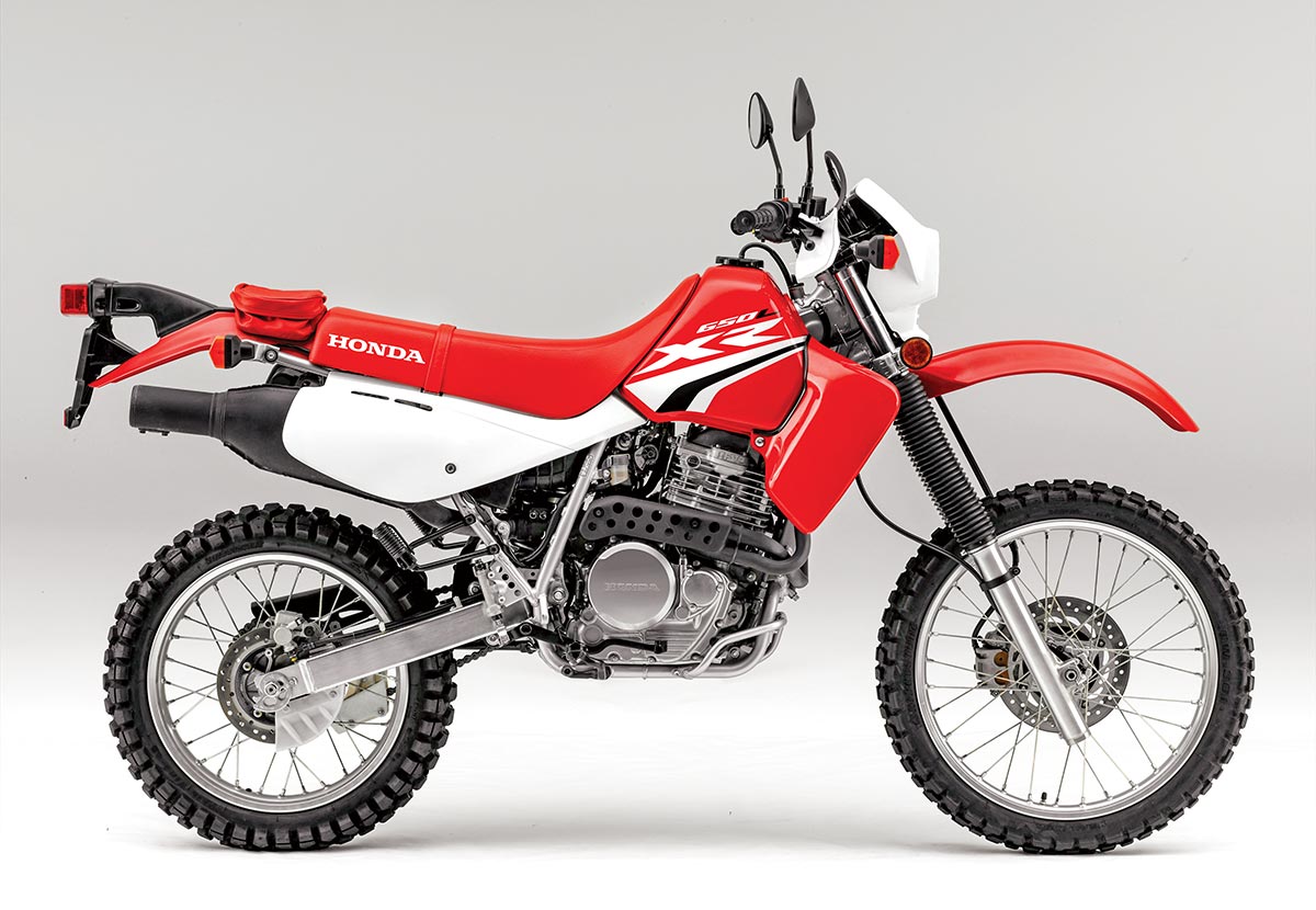 The good news here is that the price didn’t go up. While the XR650L is a dirt-worthy machine, the air-cooled five-speeder weighs a hefty 346 pounds and is fit with less than cutting-edge technology. It’s normally aspirated via a CV carburetor, has electric start and, incredibly, the suspension’s ability to chew on off-road still rates well.