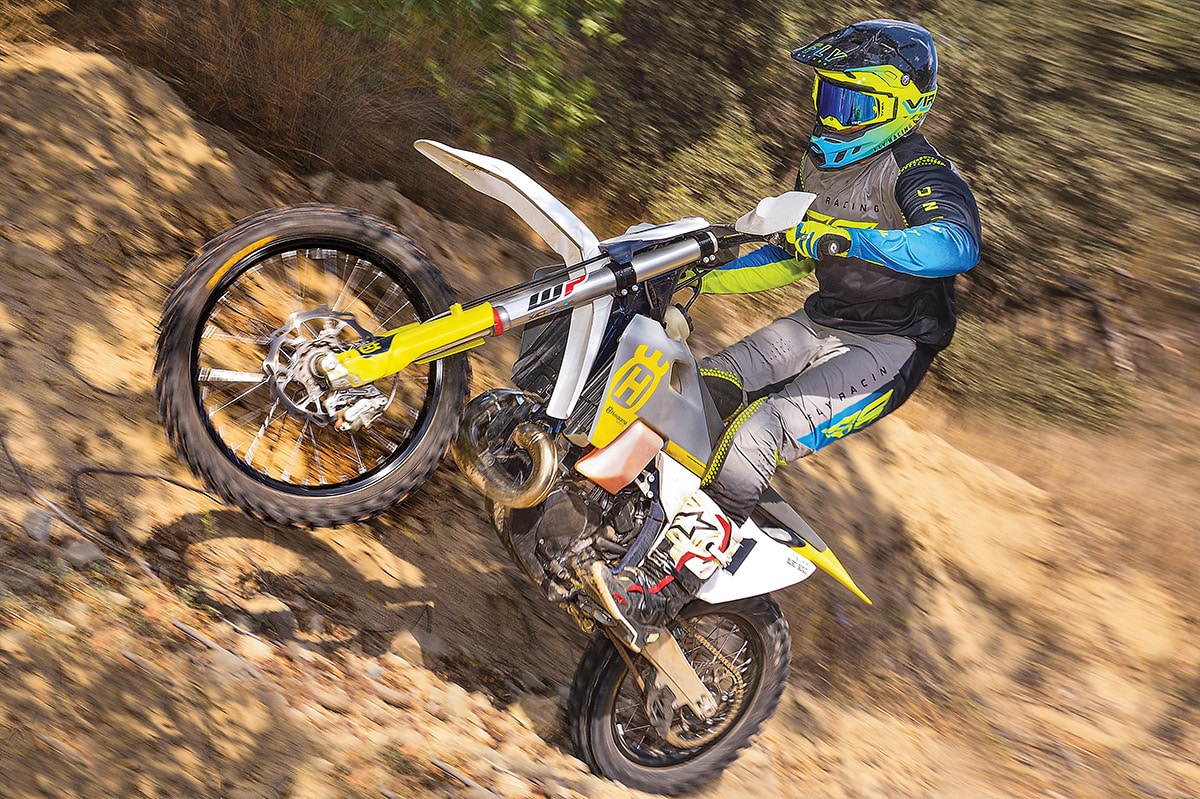 OUR TAKE: We love the new Husqvarna TX300 two-stroke, but we’re also a little afraid of it. It has two maps available through a handlebar switch—too much and not enough. The aggressive curve is pretty good for motocross, but it hits hard and fast. For off-road applications in rocks or mud, it’s a handful. The mild map is dramatically different. It has a soft power delivery that’s pretty good for trail riding, but what you really want is something halfway between the two. With the JD Power Surge, you can get there. Installing it is super easy. The unit can be attached to the steering head where it’s well protected and the wiring has connectors that are perfect matches for the OE wiring. Going in, we knew that JD’s proprietary map was very different off the bottom. The difference was easy to notice. The TX gained power in the lower midrange of both maps. In the mild map, the power increase was just enough to make us happy for off-road riding and racing. In the aggressive map, however, it made the big hit even bigger. It was a little too much off-road.