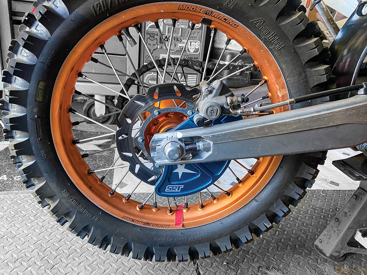 PRODUCT: SRT’s Pro-Armor disc guard is a one-piece forged and machined rear disc guard that is made of 60661 T6 aluminum. Because it’s forged out of a single piece of aluminum, SRT says that the strength is maximized, the fit excellent and the installation is pedestrian. It protects the dangling rear brake rotor and replaces the OEM caliper carrier. All the standard hardware is used, and it comes in silver, black, orange and blue.