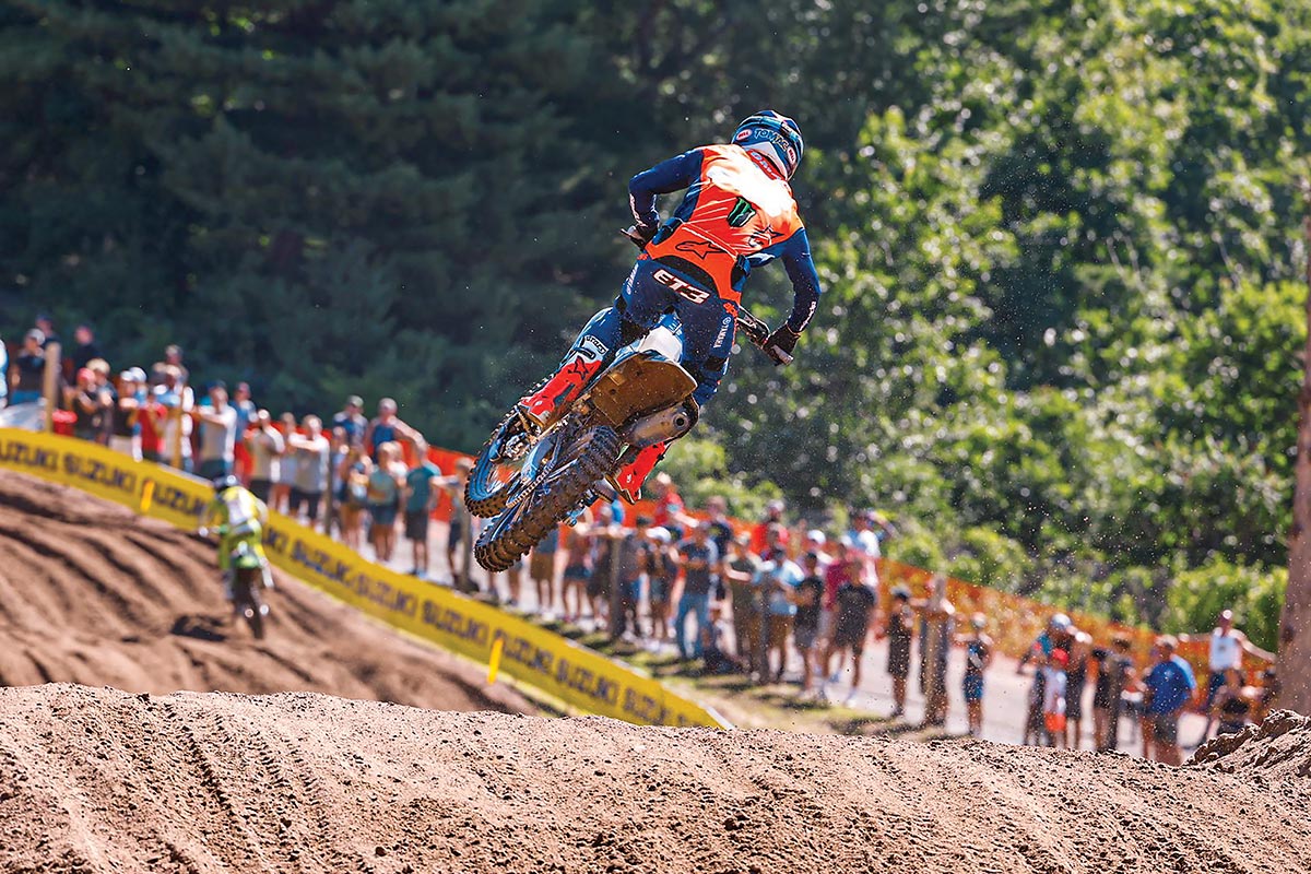 OUR TAKE: In deep sand the MX14 behaves almost exactly like the MX12. If you’ve never ridden with a scoop, you’ll be amazed. A dedicated soft-terrain tire is an unfair advantage in sand, and the MX14, like its predecessor, is among the best. Straight-line acceleration is excellent. That translates to much better starts. If you are a 250 four-stroke rider, in fact, you have to relearn your start-line habits. The MX14 gets so much more bite that it drags the motor down. You have to concentrate to keep the revs up. Even on a 450 there’s a noticeable drop in revs. A 120/80-19 MX14 weighs 12 pounds, which is slightly lighter than a Dunlop intermediate tire of the same size.