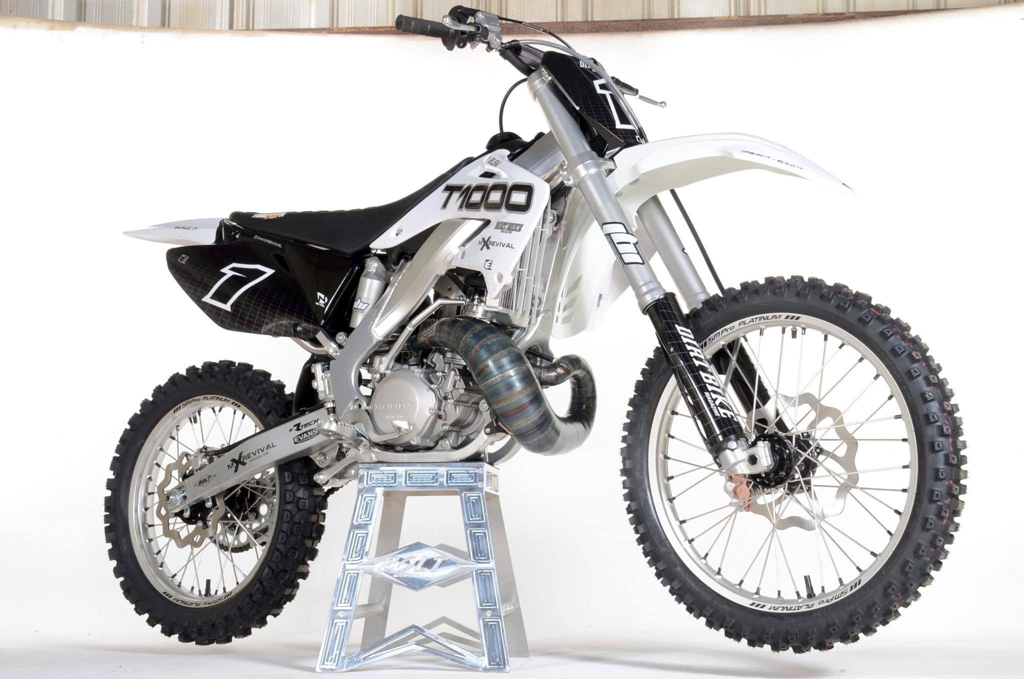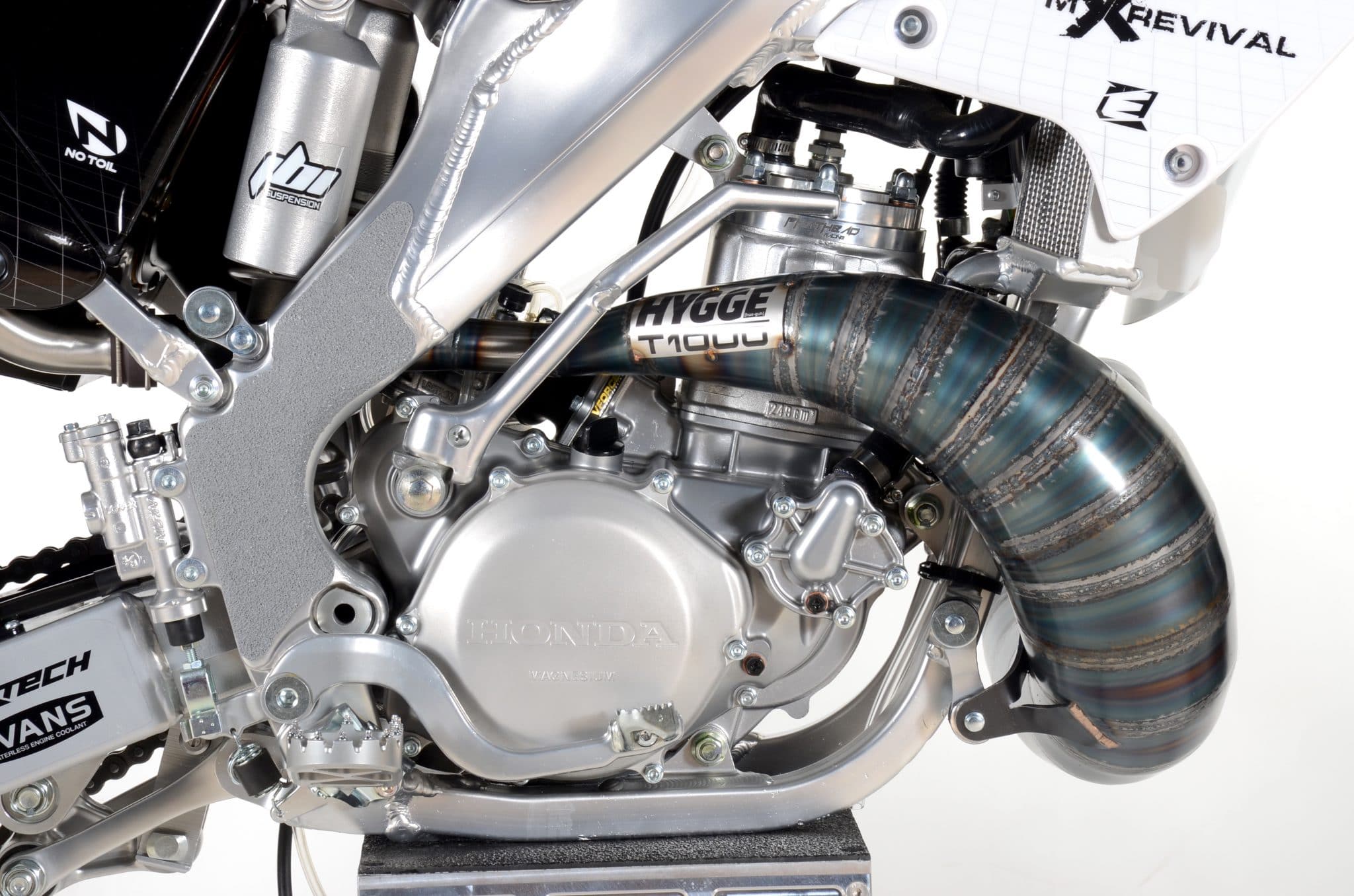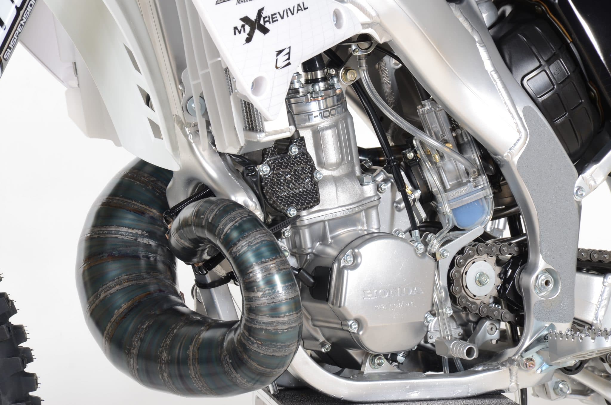 On this week’s Two-Stroke Tuesday we take a pictorial look at our studio session with the much anticipated finished T1000 Honda CR250R build with MXRevival. The attention to detail and how clean this machine is mind-blowing. Charles does include aftermarket companies on this build but a lot of the OEM items have been restored and some of them to better than new condition. Enjoy all the images below and look for a complete story in an upcoming printed issue of Dirt Bike Magazine. In our 2-Stroke Behind The Build section we keep the Honda CR250 theme going strong with test rider Justin Jones 2003 CR250R project from a couple years ago.