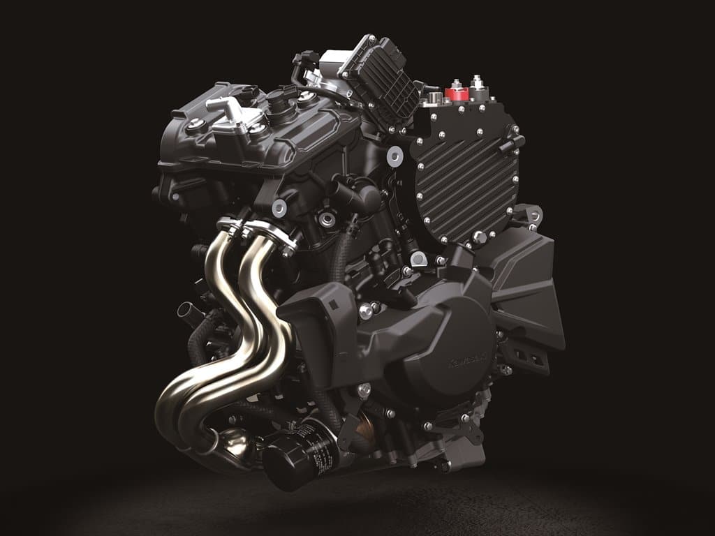 Many of the manufacturers are now releasing their 2024 dual-sport bikes, street bikes and unchanged models. In the mix is one Kawasaki street bike that caught our attention. The Ninja 7 Hybrid has some interesting technology that we will probably see on dual-sport bikes soon. The electric component of the hybrid power unit includes a liquid-cooled traction motor powered by a 48V lithium-ion battery pack beneath the seat, enabling all-electric riding for short distances at low speeds. The battery is charged while riding, eliminating the need for external charging. Heat management is addressed with two radiators, a liquid-cooled oil cooler, and a system directing hot air away from the rider. Ducts in the lower cowl provide cooling for the hybrid power unit’s components. The regenerative system recycles deceleration energy back to the battery, contributing to an extended cruising range.