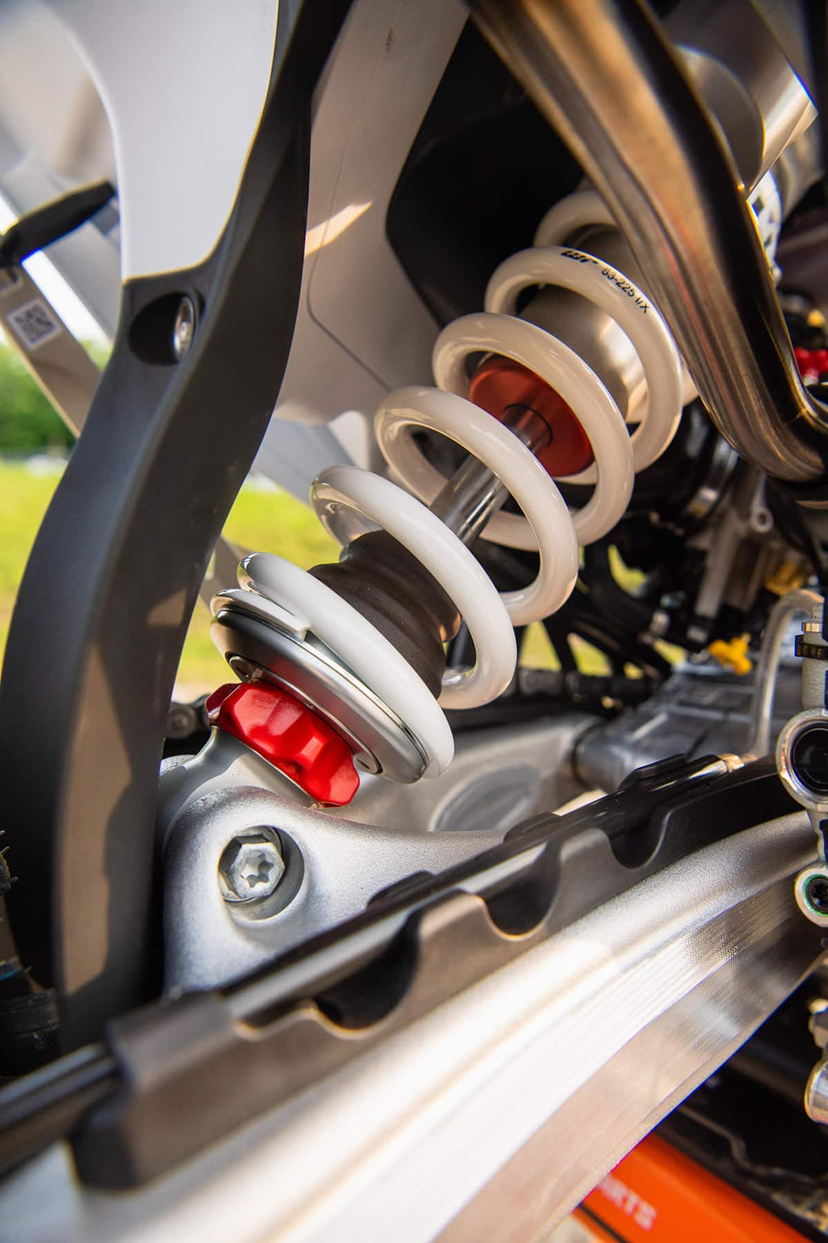 The new kickstand is much improved over the old bike, getting rid of the old bracket and self-tapping screw that launched on cue. New handguards at the controls are improved and mount to the clutch and brake perch. If you’re into night riding, you’ll love the new LED headlight. There is no comparison with how much bright-er it is over the old bike. We have been having issues with the new push-button light switch, as it won’t stay engaged and shuts the light off. On the belly of the bike, the new skid plate offers proper protection to the frame and engine. Air-filter access is improved with more room and more visibility to ensure you fully seat your filter correctly.