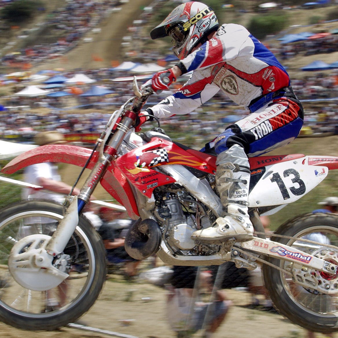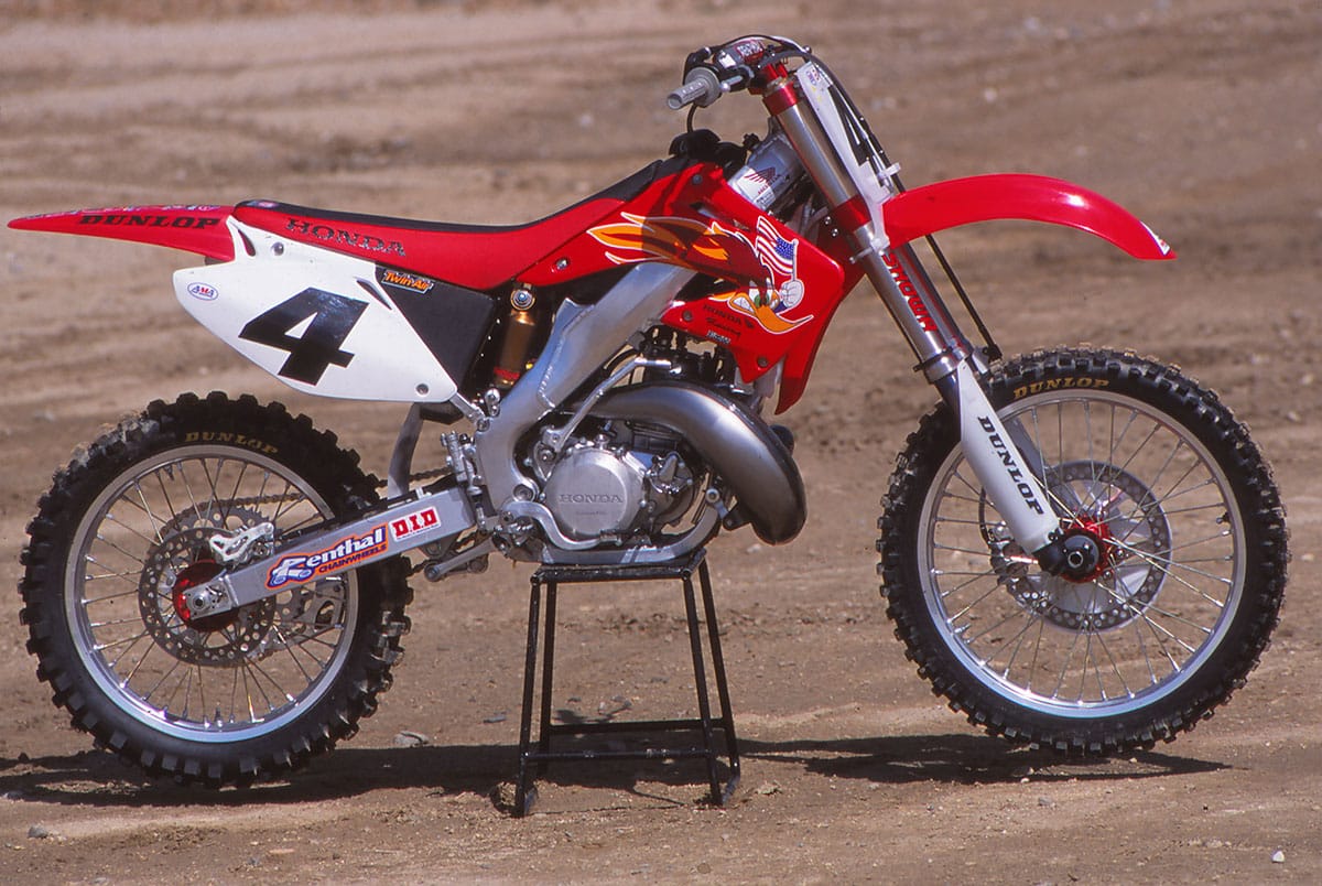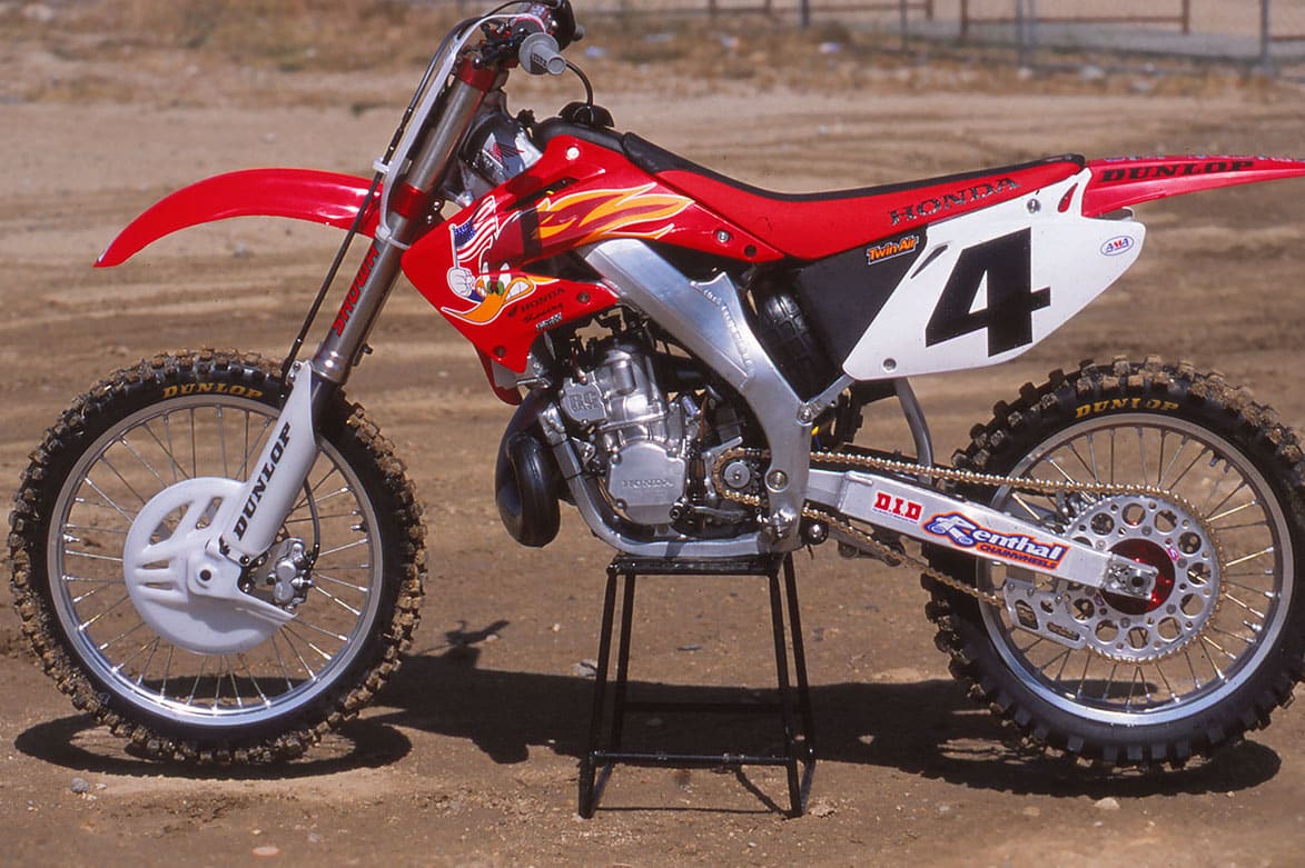 No doubt about it, Ricky Carmichael’s switch to Team Honda paid off. Despite his first-round DNF and another nasty get-off at Pontiac, RC had a stellar Supercross season, winning 11 mains, 12 heats and his second 250cc indoor title. He’s started off the outdoor season in dominating fashion, too, winning 10 motos in a row. Yep, Honda has to be pleased, winning its first indoor title since McGrath did it in ’96. The break between Mt. Morris and Southwick, was our opportunity to ride Carmichael’s championship bike.