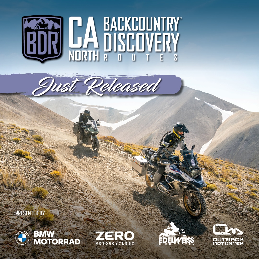 Since 2010, the BDR non-profit has created 12 trans-state routes for adventure and dual-sport motorcycle travel. Now, BDR announces its thirteenth route, the Northern California Backcountry Discovery Route (CABDR-North), produced in partnership with BMW Motorrad USA, Zero Motorcycles, Outback Motortek and Edelweiss Bike Travel.