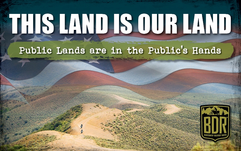 Backroads Discovery Routes is a nonprofit group with the mission of providing information about off-road routes throughout the U.S. They recently distributed an alert to inform riders of several pieces of legislation that could seriously impact off-road riding through the sale of public land to private corporations. Here is the official statement from BDR