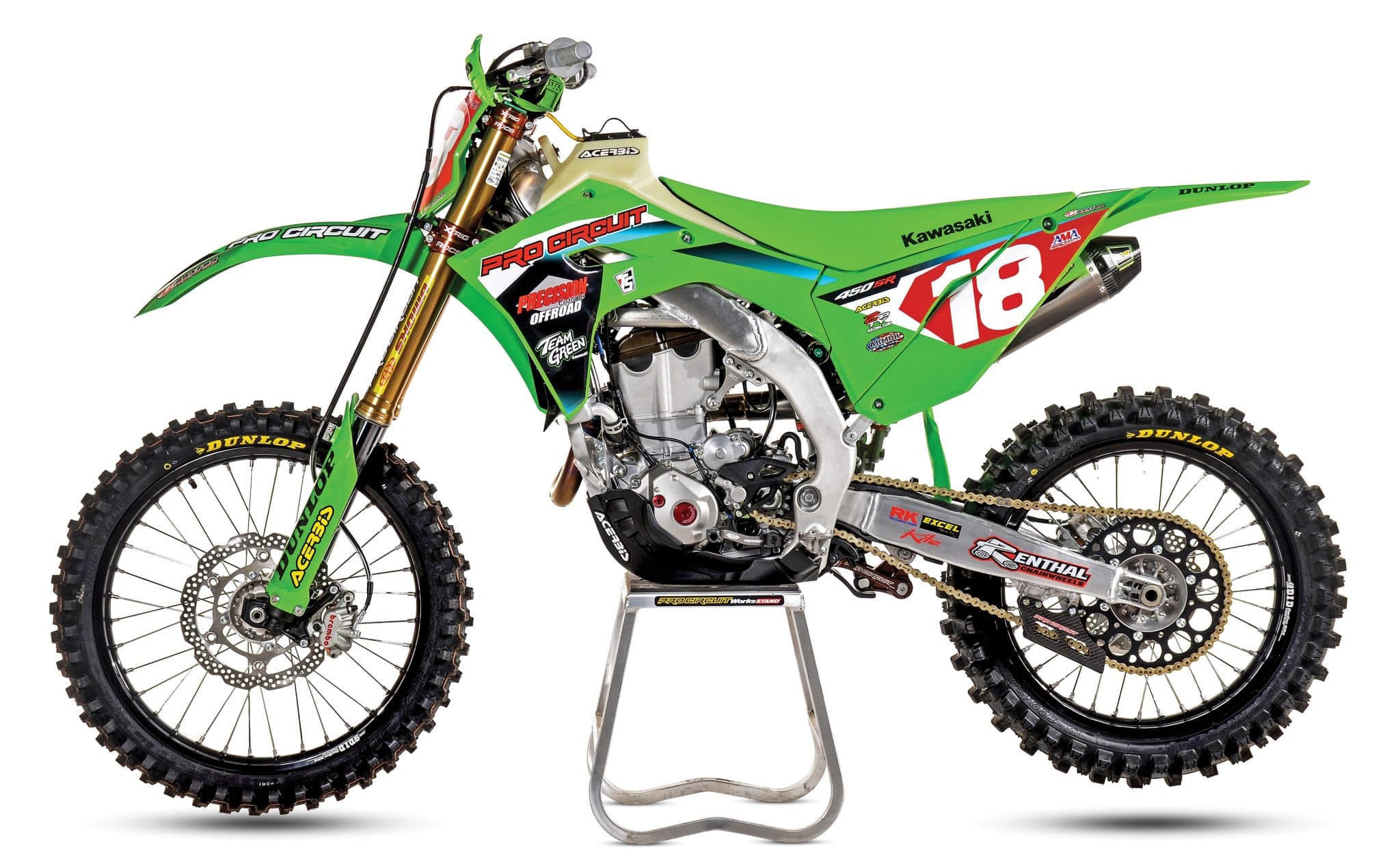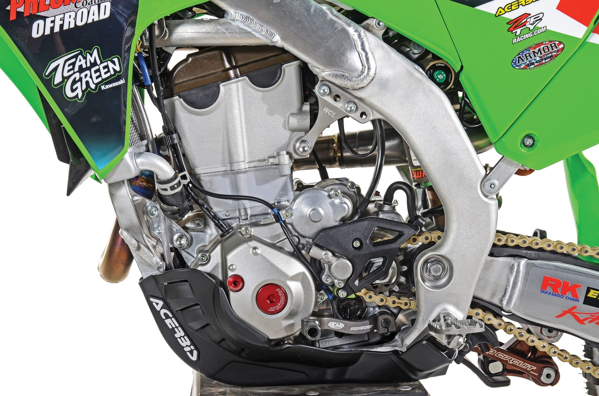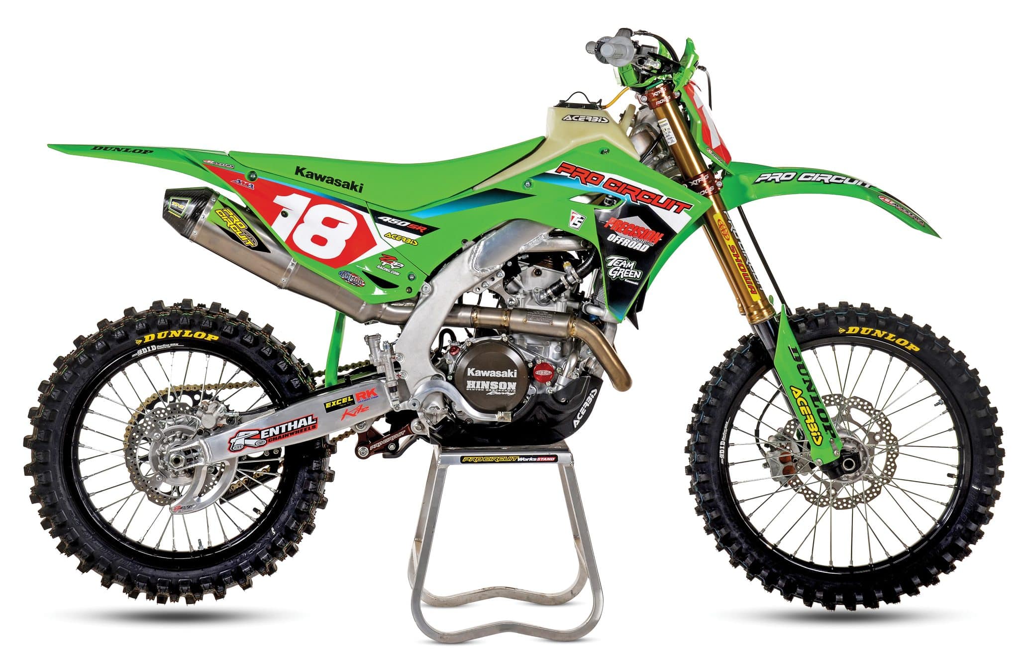 Just like any professional-level race machine, they are highly personalized to the rider racing it and oftentimes are the complete opposite setup to what the average guy would want. Giacomo Redondi’s Precision Coatings/Pro Circuit Kawasaki is somewhere in the middle of that scenario. Everything on his bike is available to the public either through Pro Circuit or the team sponsors, and you can even purchase the race-team graphics from Throttle Syndicate. That’s huge for everyone trying to replicate this build. Power-wise, Redondi’s setup is more aggressive than the standard model and a slightly toned-down, more rider-friendly version of the SR model. Then, on the handling side, it’s definitely stiffer all around than other stock KX450 platforms, but not completely unrideable by the average person. Honestly, after doing the research on this race bike, we have a few items that we want to try on our off-road KX450 build that is currently in the works. Thanks to the Precision Coatings/Pro Circuit Kawasaki race team for the insight.