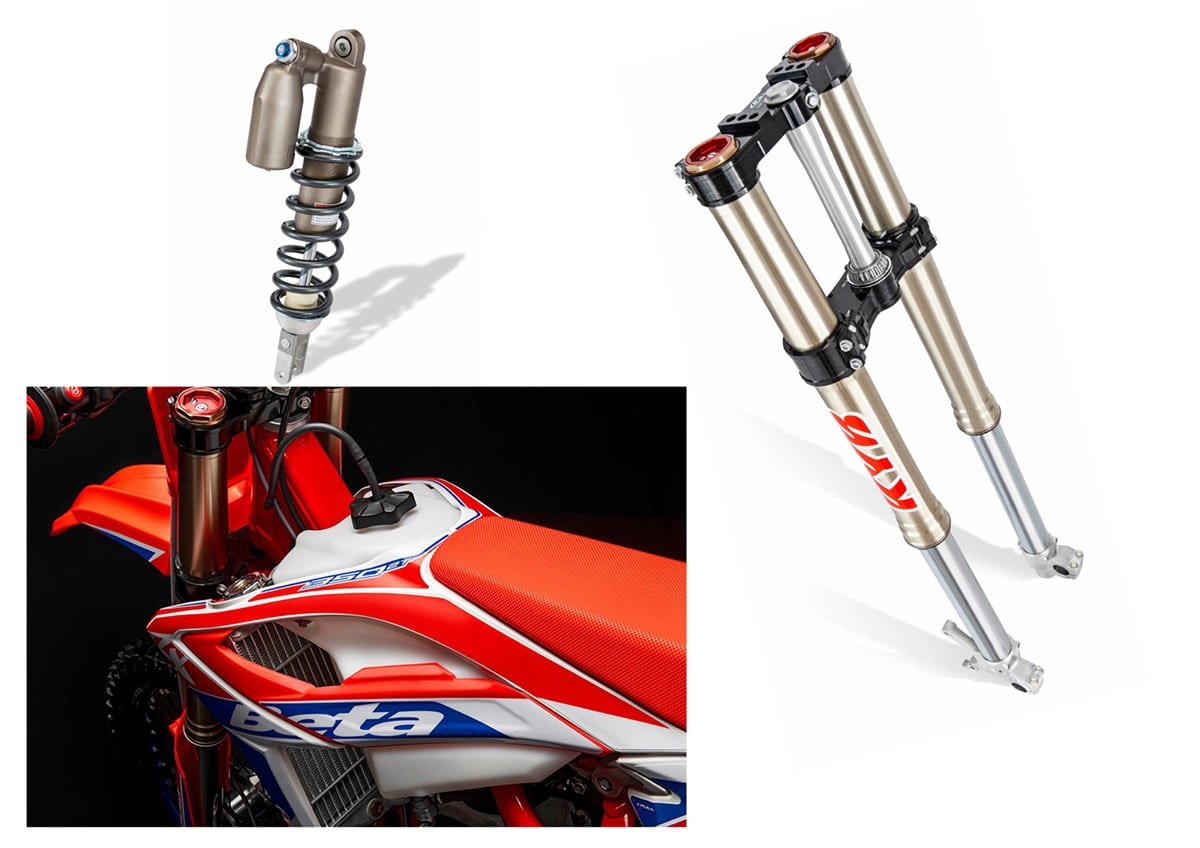 Engine: Both engine capacities received a completely new, purpose-built engine. The 350 RX was designed to obtain the greatest linear power delivery and give riders the option to exploit the great power available when needed, while the 250 RX can count on explosive performance, ready to compete in races under all conditions.